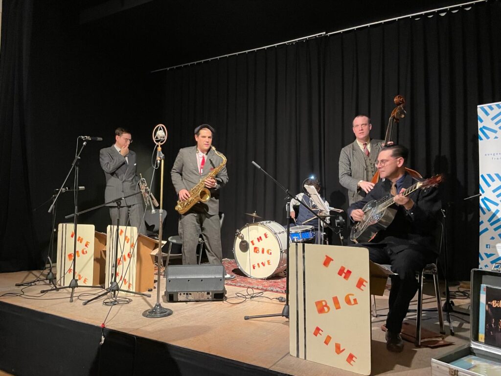 Ab 19 Uhr gab es Kurse von der Tanzschule Swing Base für Anfänger:innen und Fortgeschrittene, ab 21 Uhr hat die Berliner Band The Big Five Lindy Hop, Charleston und Balboa gespielt.